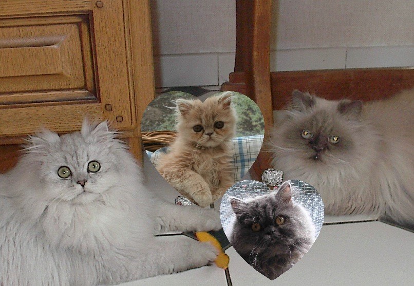 Valentin : Persan Chinchilla né le 20 avril 2002 Vison : Persan Crème né le 7 septembre 2004 Vertigo : Persan Bleu né le 7 septembre 2004 Bella : au ciel, née le 25 septembre 1991